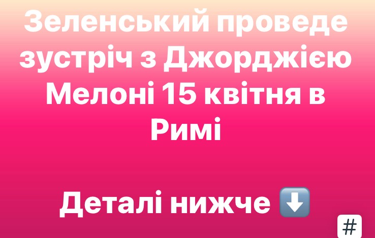 15 квітня Зеленський летить до Риму на зустріч з Мелоні