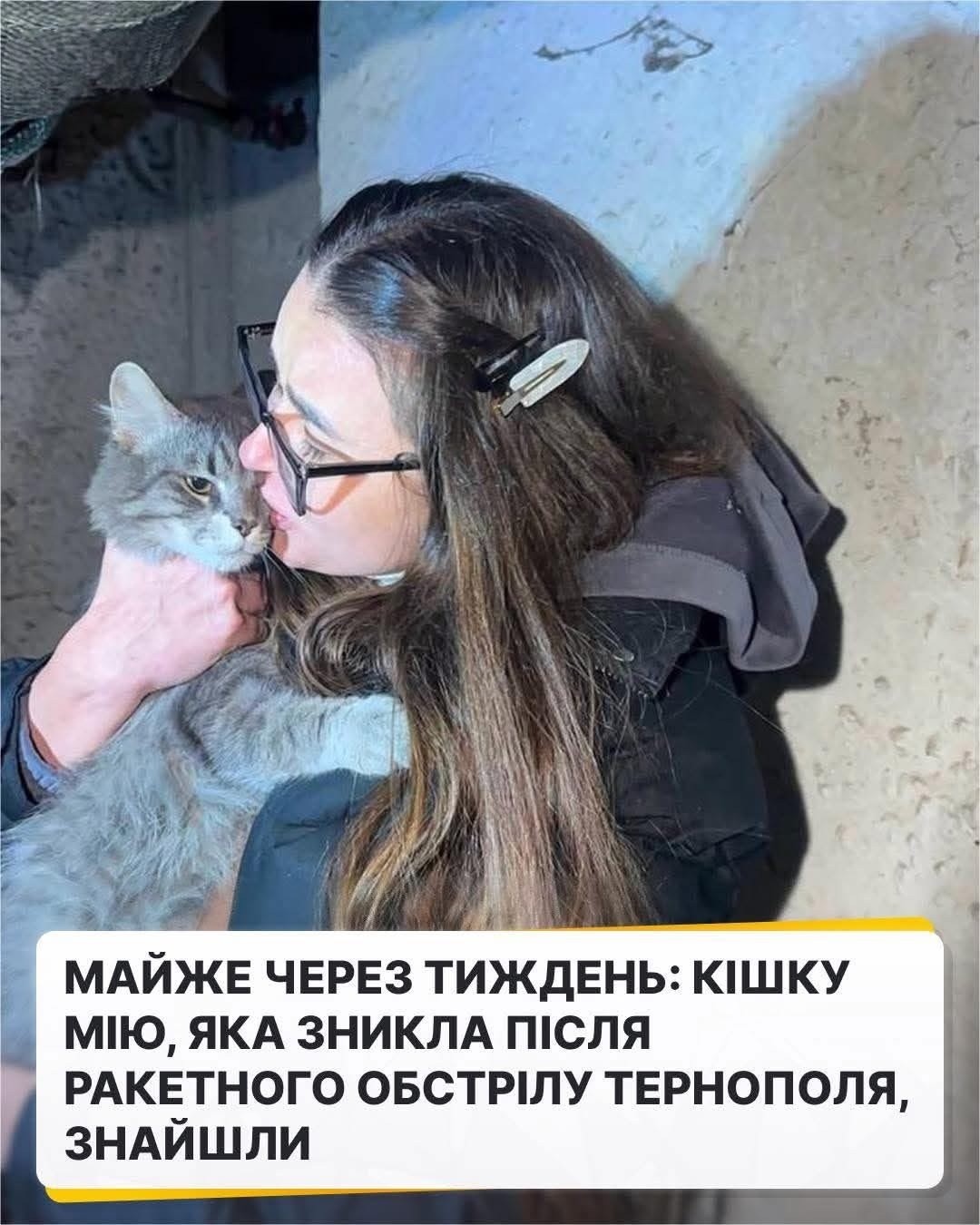 🐱«9 днів я шукала її кожного дня…», - нарешті кішка Мія, яка зникла після ракетного обстрілу Тернополя, знайшлась!