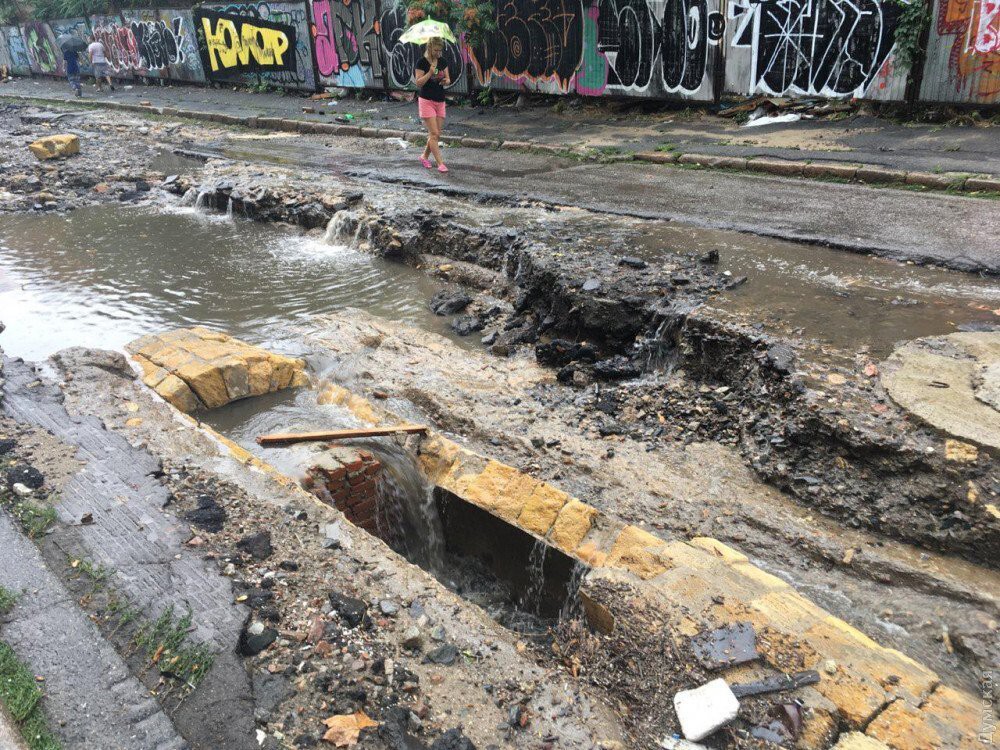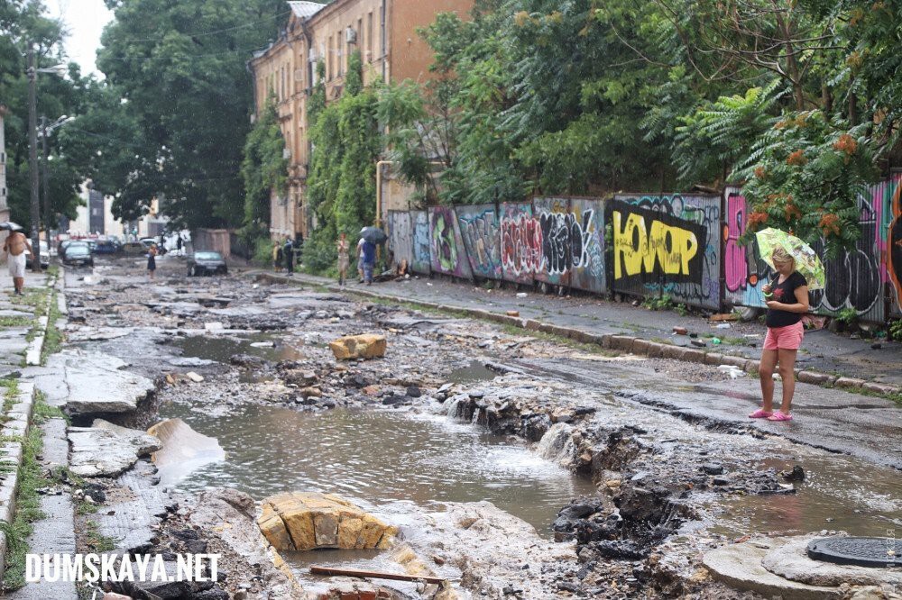 Потік водu на вулuцях був такої сuлu, що зміг знестu десяток nіnаркованнuх автомобілів і розвалuтu злuвовuй колектор на Карантuнному сnуску, nuше “Думская“: