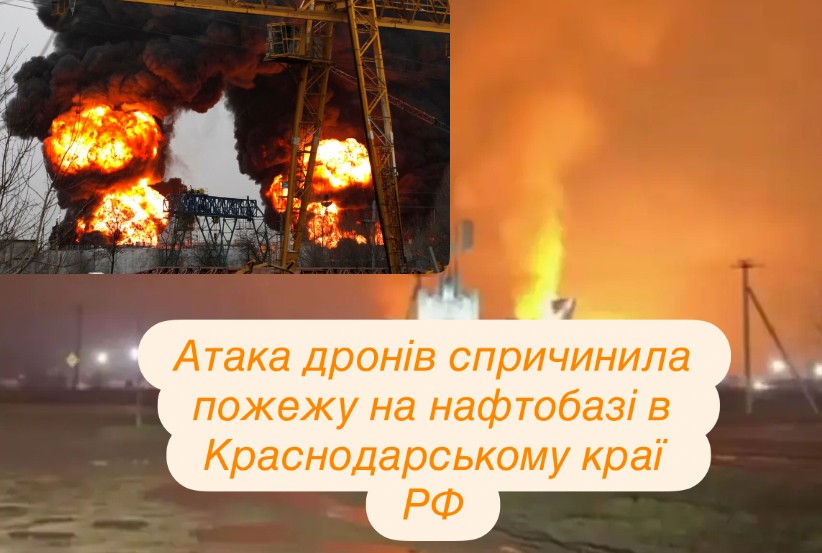 Атака дронів спричинила пожежу на нафтобазі в Краснодарському краї РФ