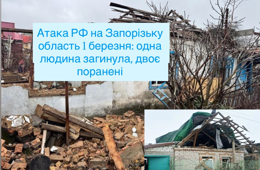 Атака РФ на Запорізьку область 1 березня: одна людина загинула, двоє поранені