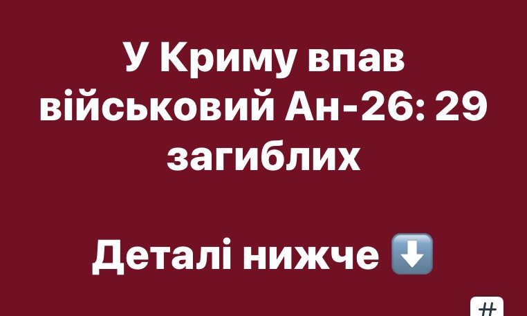 Міноборони рф підтвердило смерть 6 членів екіпажу та 23 пасажирів військово-транспортного літака Ан-26 у Криму.