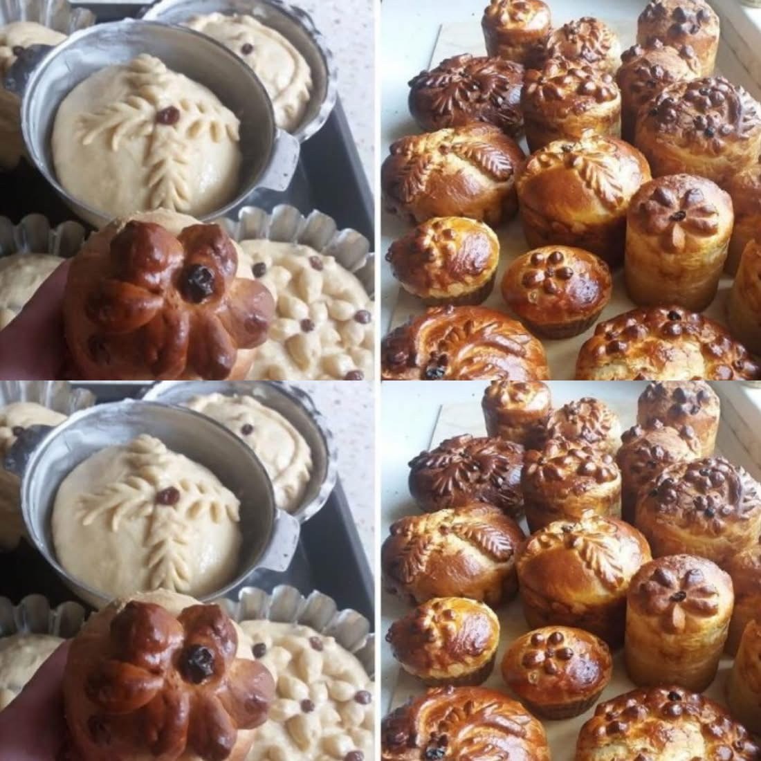 Коли тісто знову виросте у 2 рази, вимісити його і формувати пасочки. Залишити шматок тіста завбільшки з два кулаки на прикраси. Форми застелити пергаментом (змастити його смальцем), зробити високі бортики (мають бути вищі за форму десь на 4 см).