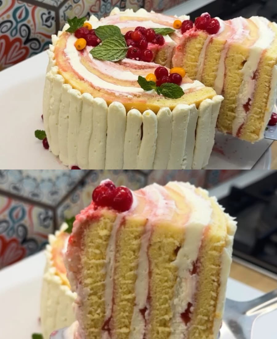 Бісквітно-ванільний торт “Весняний пеньочок” із полуничним конфітюром і ніжним вершковим кремом: така смакота, що просто тане в роті (покроковий рецепт з фото)