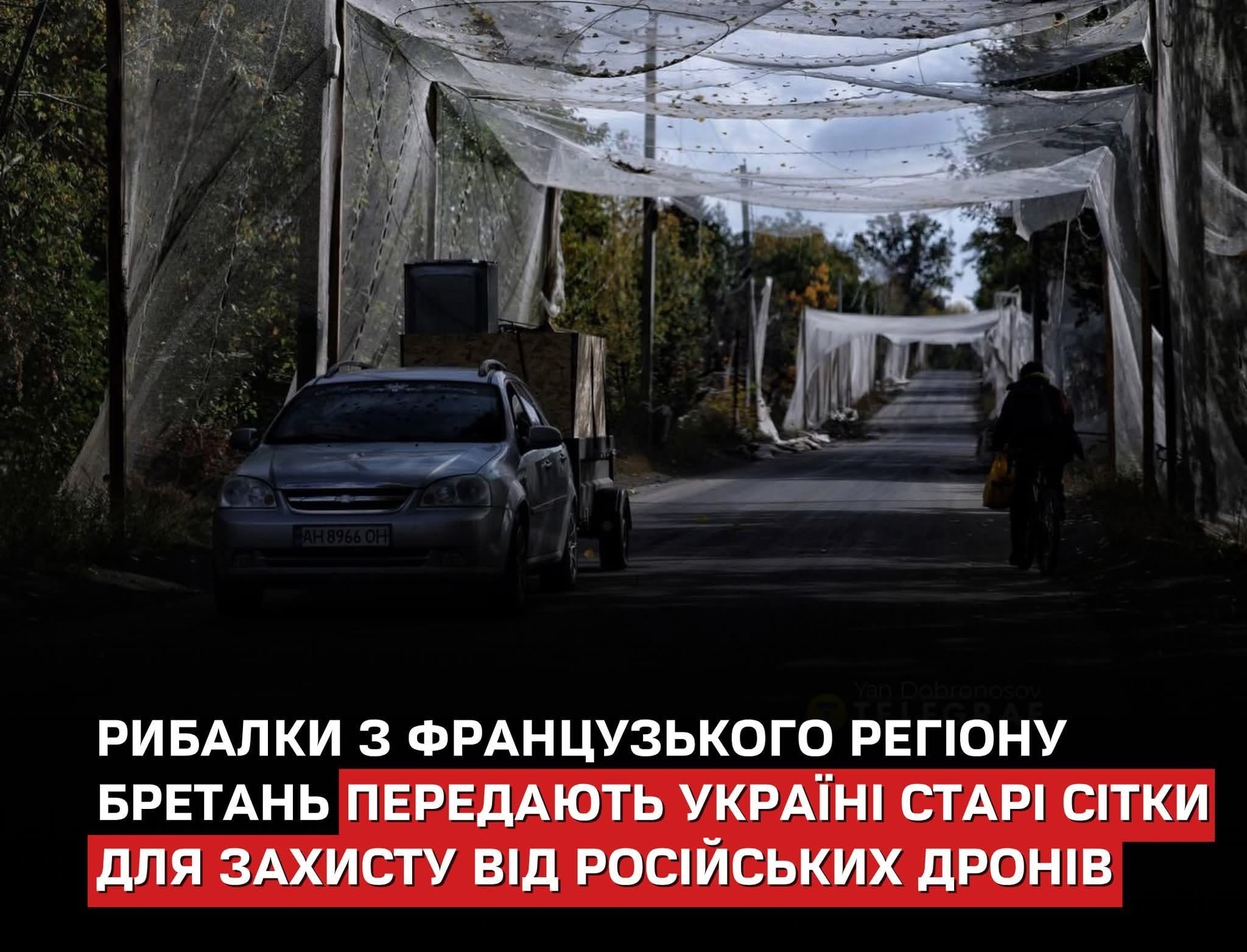 Благодійна організація Kernic Solidarités відправила до України дві партії сіток загальною довжиною 280 км, які використовуватимуть для захисту солдатів і цивільних.