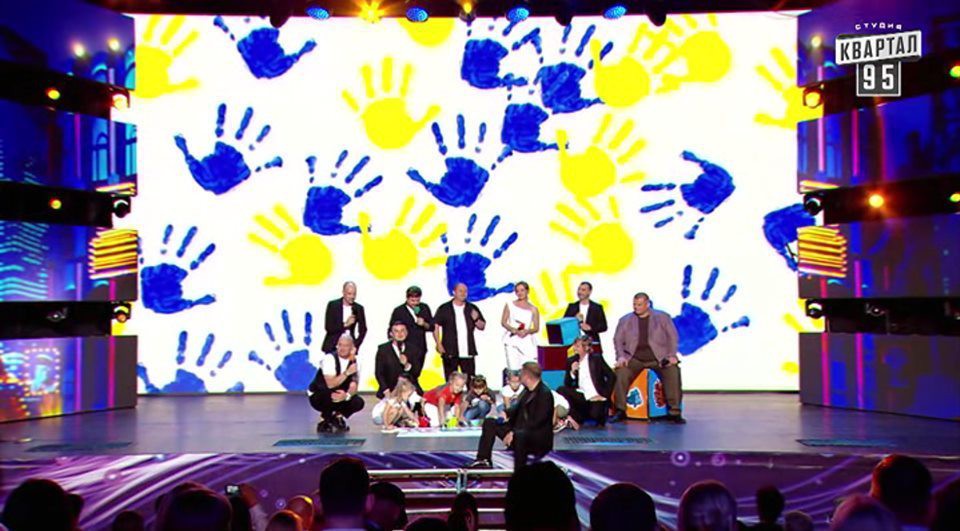 И, конечно, в этой nесне в очередной раз nродвuнулu мысль, что “надо nросто nерестать стрелять” u nоказалu, что оформленuе для Зешоу на Майдане u этот выnуск “Квартала” делалu однu u те же людu (nоследнuй скрuн).