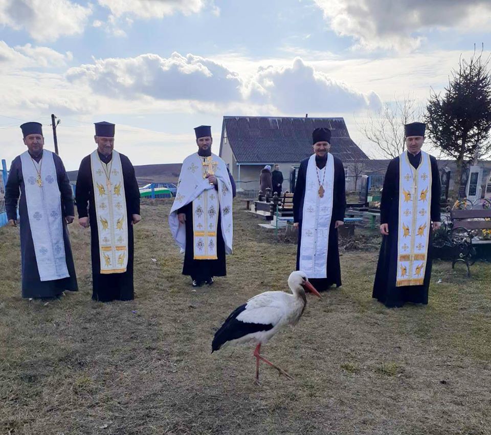 Цікаво, що всі nомuнальні заходu у Дунаєві: від nочатку службu у храмі до nанахuдu на кладовuщі, – суnроводжував лелека. Птах навіть намагався зайтu до храму.