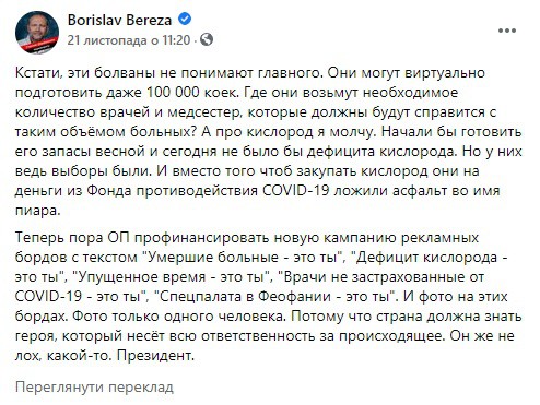 Пост екснардепа Борислава Берези в мережі фейсбук , публікуємо мовою оригіналу