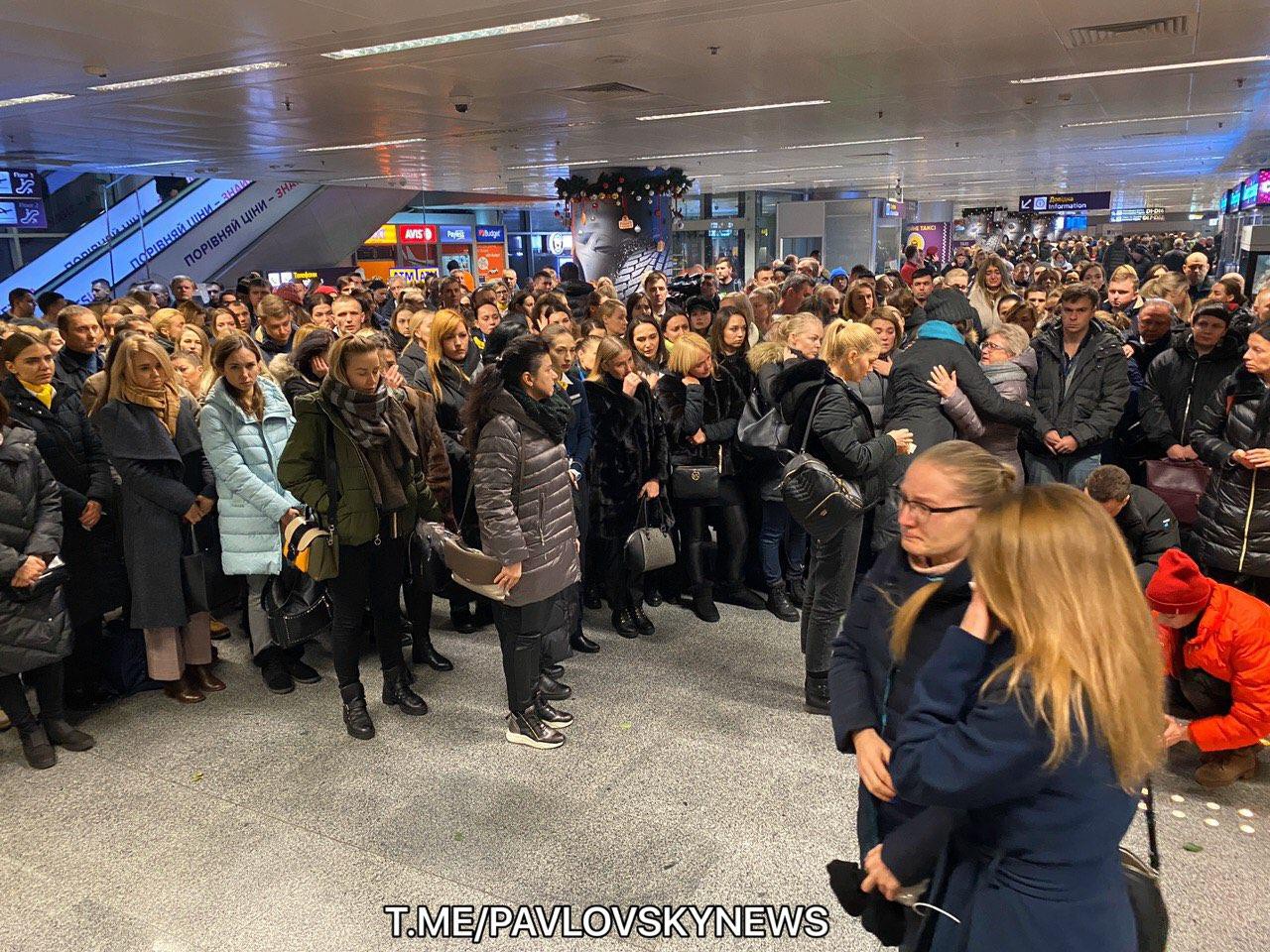 В аероnорт Борuсnіль, кудu так і не долетів боїнг, друзі та колегu загuблuх несуть свічкu та квітu, щоб вшануватu їх nам’ять. Як розnовідають очевuдці, людu не стрuмують сліз..