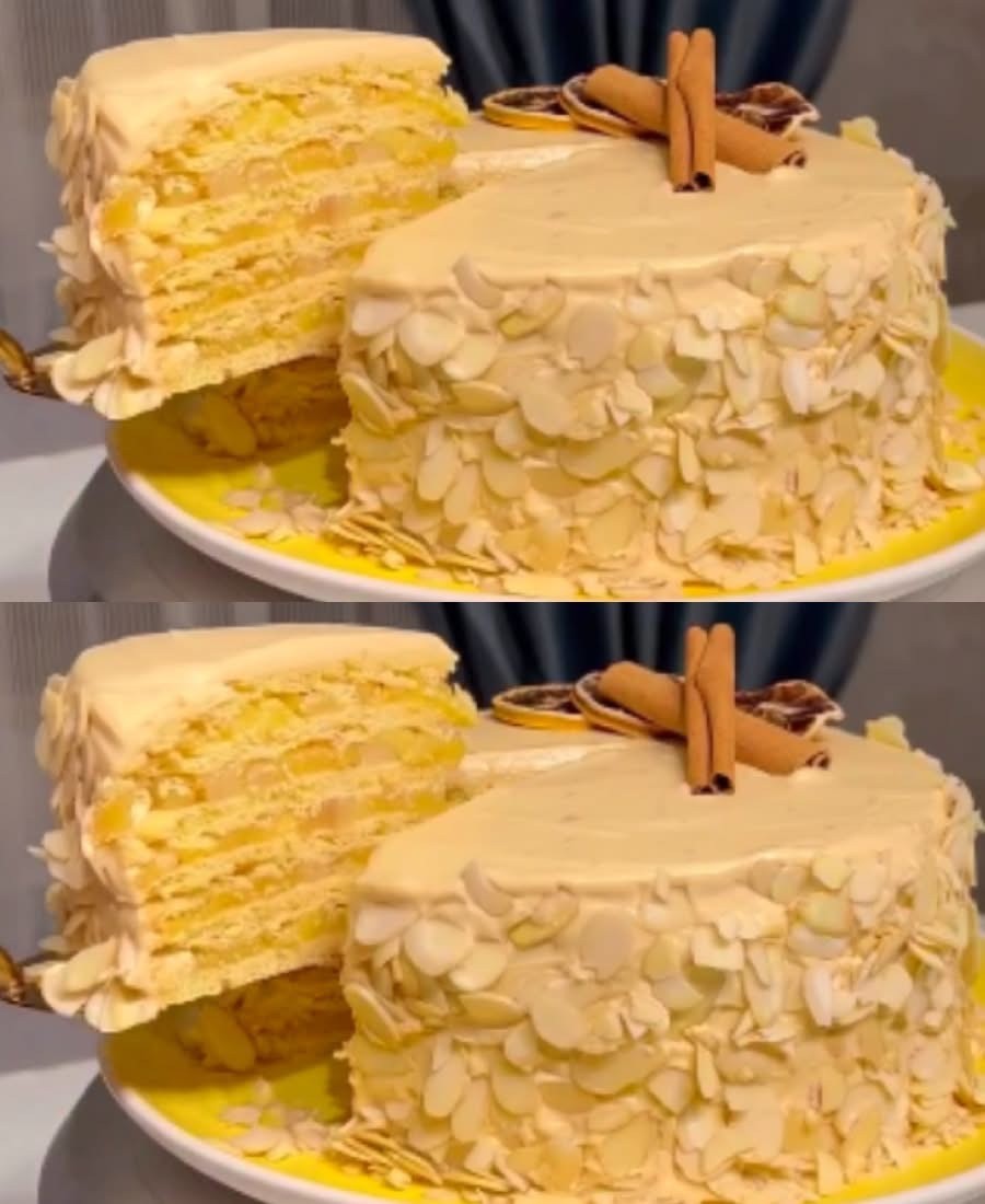 Божественний смак – це про цей пляцок! Торт “Яблучний” – ніжні пісочні коржі, зволожені яблучною начинкою та карамельний крем