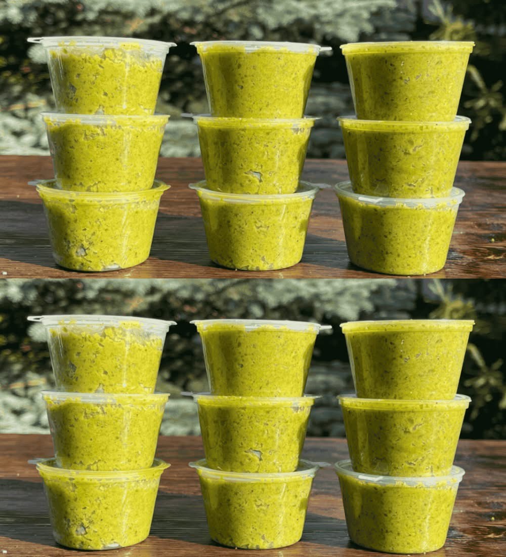 Все ще один раз пробиваю блендером. Для заморозки я використовую одноразові соусниці, мені більше так подобається, так як зручніше потім використовувати.