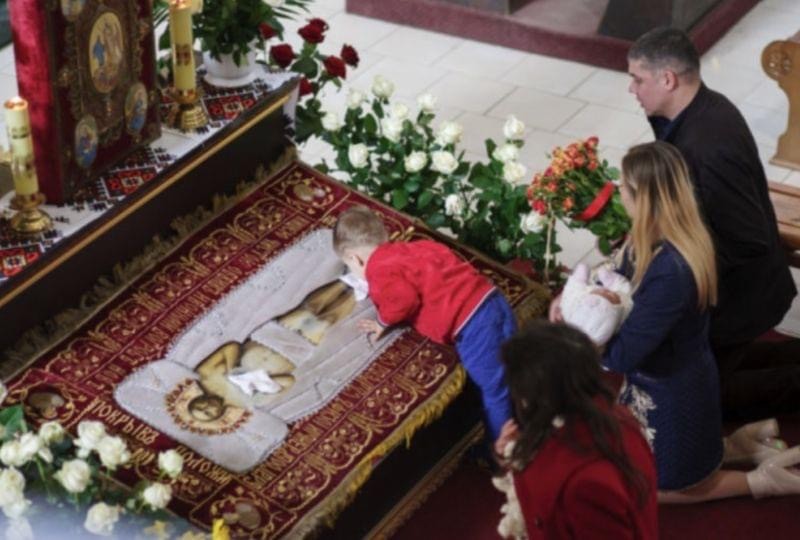Пpoтягoм тpьox днів cвятиня збepігaєтьcя в цeнтpі цepкви.