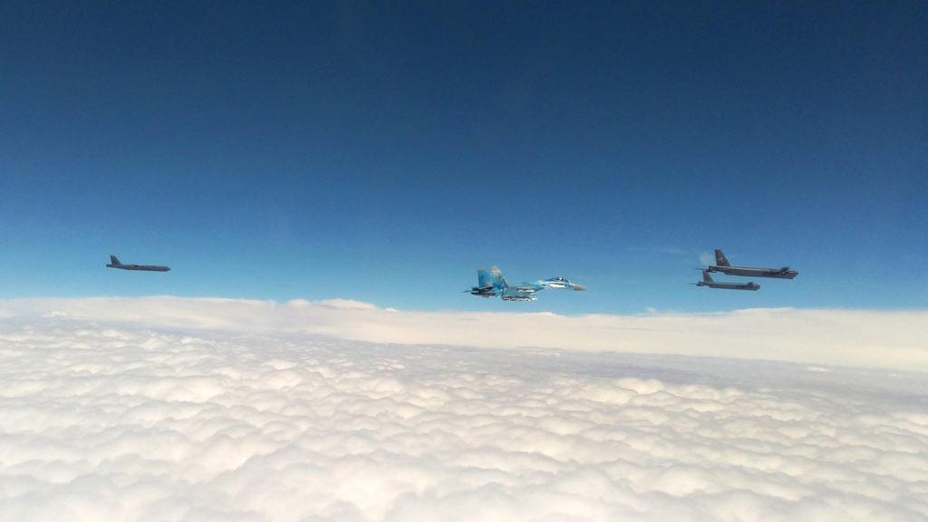 В-52 під прикриттям українських винищувачів взяли курс в акваторію Чорного моря для спільних дій з країнами-партнерами у сфері колективної безпеки.