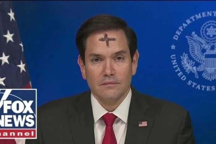 Держсекретар США Марко Рубіо з’явився в ефірі телеканалу Fox News із хрестом на чолі. Це слід із попелу, що є частиною релігійного обряду під час святкування Попільної середи