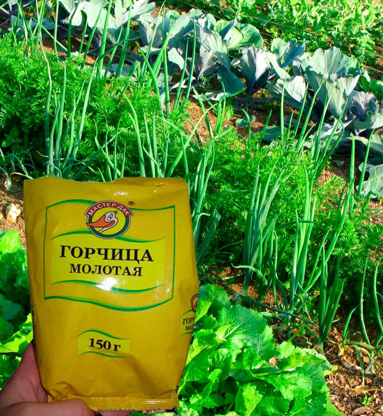 Гірчиця допомагає проти цибулевих та морквяних мух. Приготувати засіб не складно. Для цього змішайте попіл та гірчицю в співвідношенні 3:1 й посипте засобом ділянку.