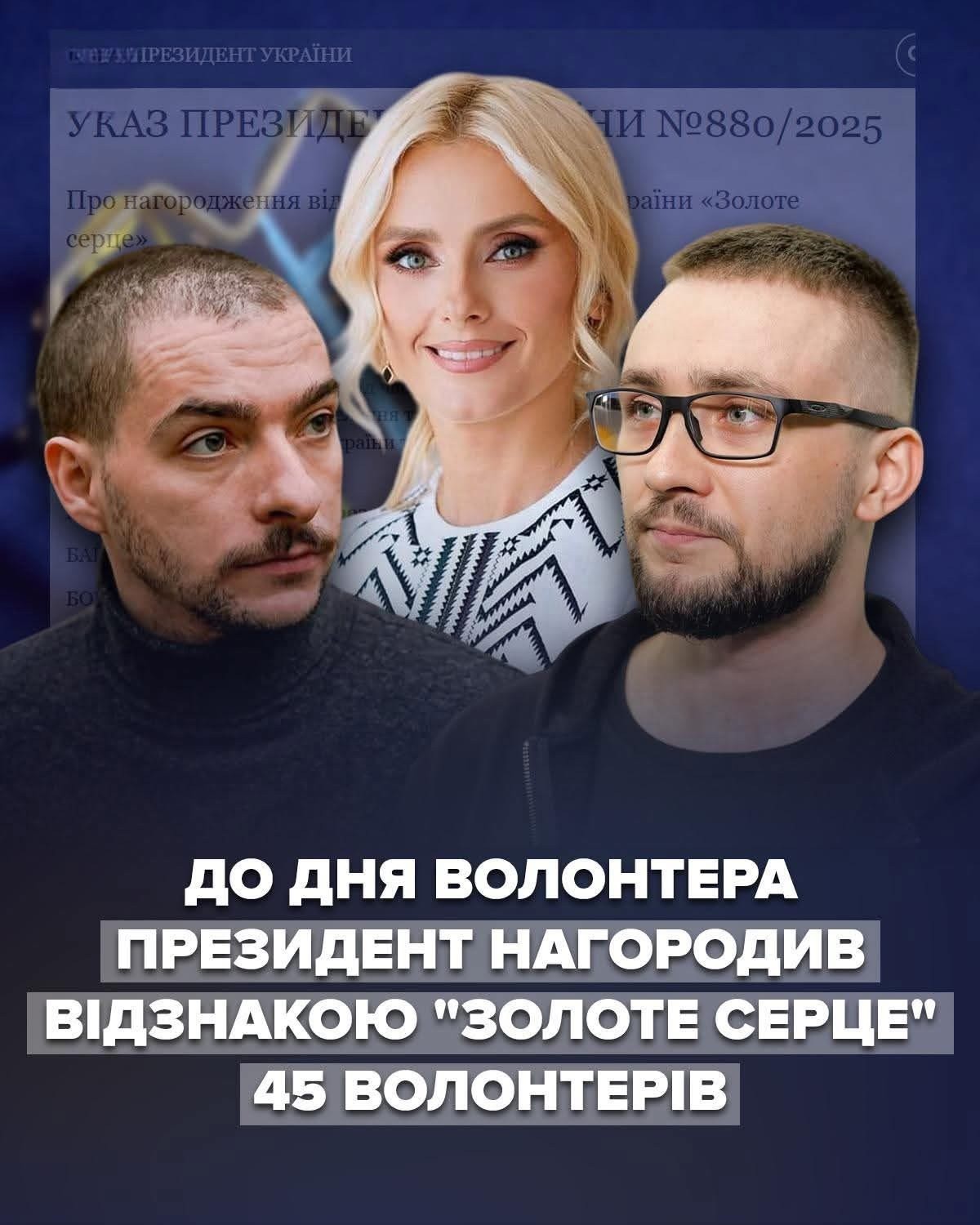 До дня волонтера президент нагородив відзнакою "золоте серце" 45 волонтерів.