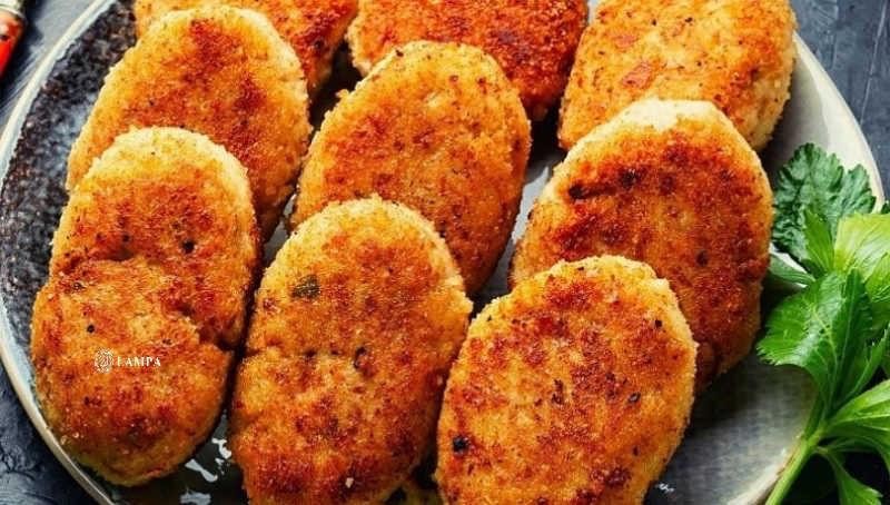 Інші компоненти залишаються класичними: хліб, замочений у молоці, сіль і спеції. Сформовані котлети обвалюють у панірувальних сухарях і обсмажують на рослинній олії.