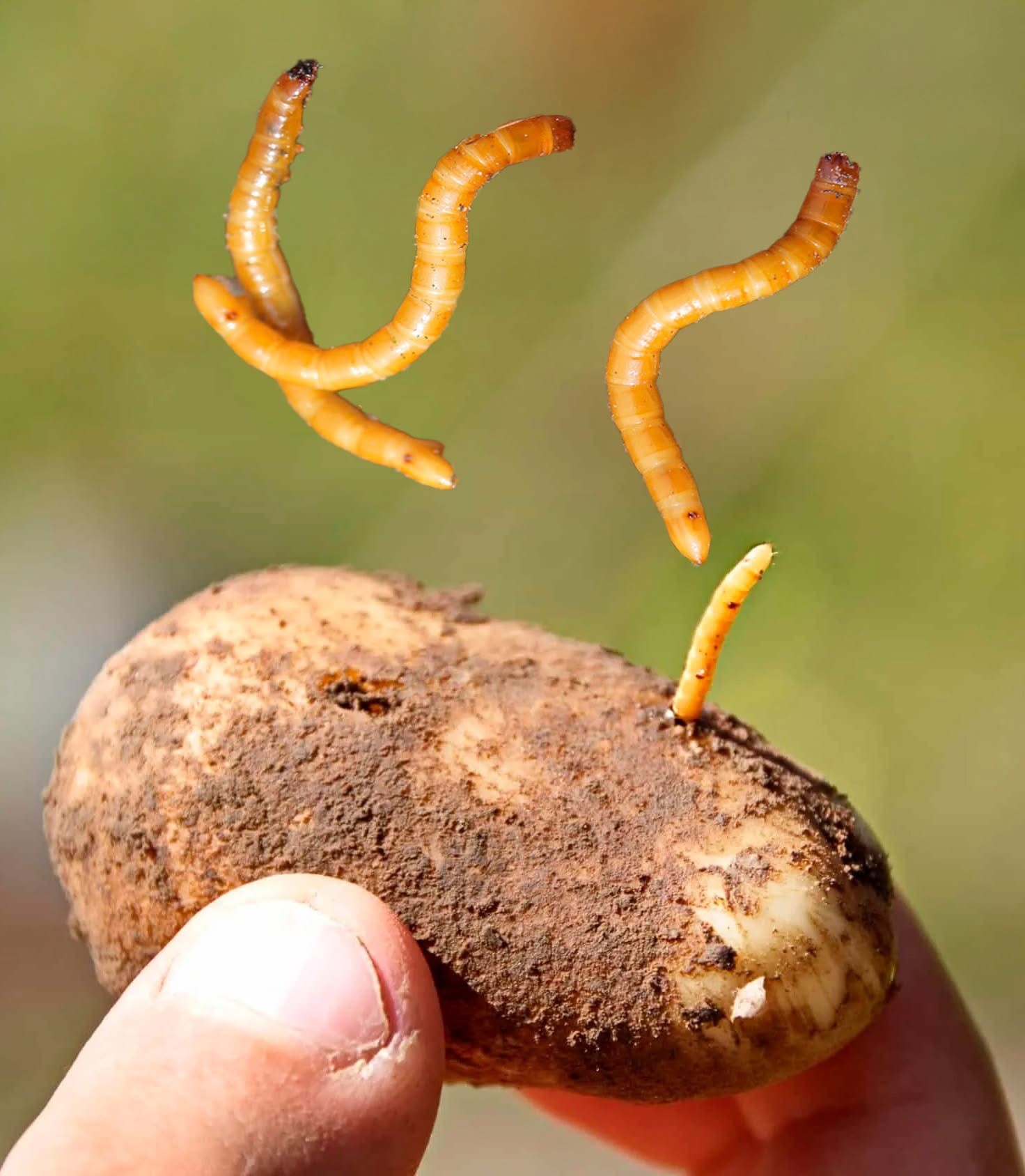 Щоб зробити пастку для личинок дротяника, потрібно розрізати бульбу на 4 рівні частини, потім в кожну частинку встромити паличку з прив’язаною ниткою або тонкою мотузкою та закопати в землю. Пастку потрібно викопати через 4 дні, зібрати та знищити велику кількість личинок.