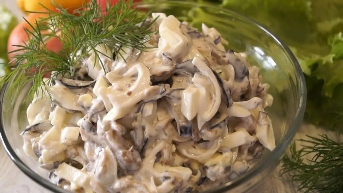 Смажені баклажани, просочені майонезом, у поєднанні з іншими компонентами до смаку стають дуже схожими на м’ясо. Спочатку навіть важко зрозуміти з яких продуктів приготовлений салат. Пікантності страві надає кисло-солодка маринована цибуля.