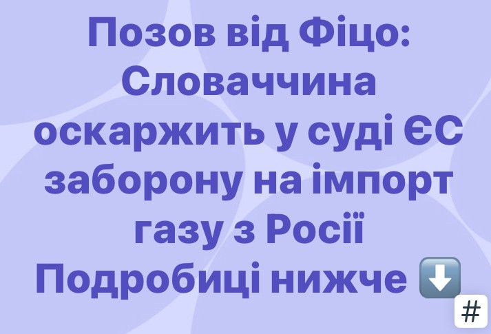 Уряд Словаччини планує до 27 квітня офіційно звернутися до суду через незгоду з процедурою ухвалення енергетичних санкцій проти РФ, Братислава наполягатиме на винесенні попереднього судового рішення, оскільки вважає регламент ЄС таким, що суперечить основоположним договорам союзу. Про це заявив прем'єр-міністр Роберт Фіцо, передає Reuters, пише УНН.