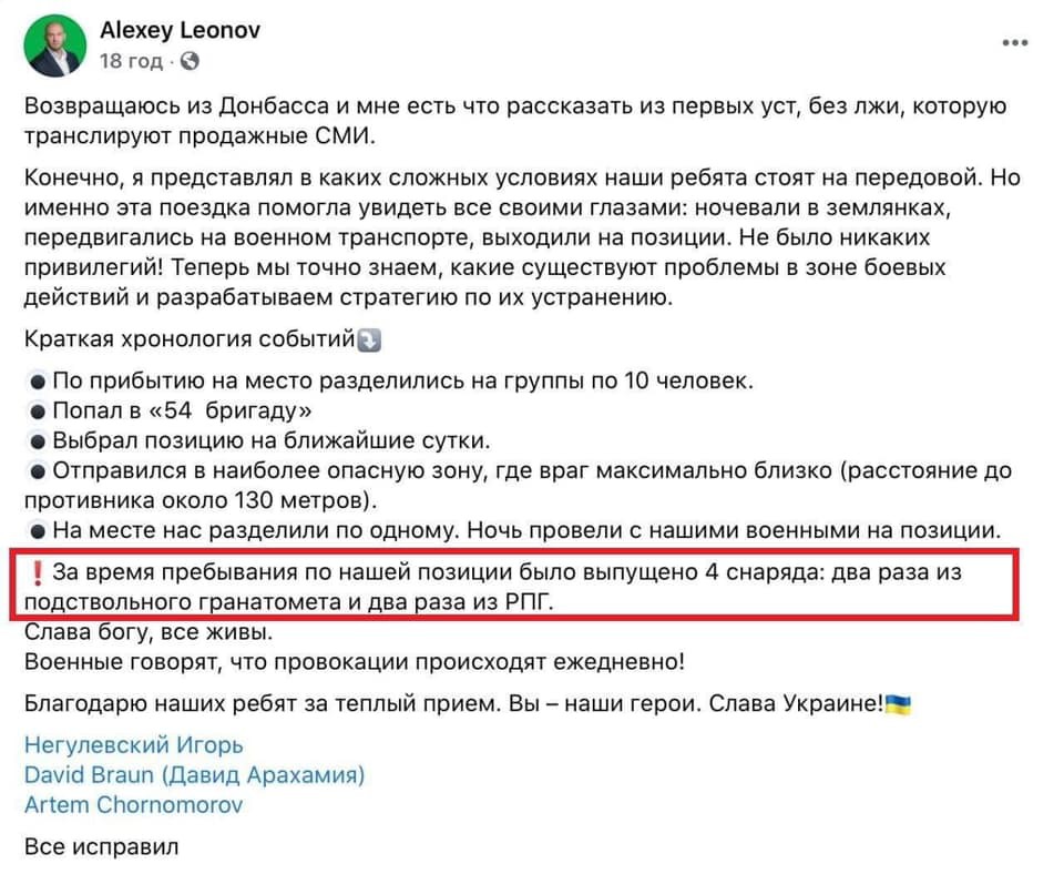 “З нетерпінням чекаю сесійного тижня, щоб познайомитися і потиснути руку цьому депутату. Досьогодні я його не ідентифікувала в череді слуг. Але треба мати неабияку мужність, аби вголос сказати правду: на війні і досі стрілять. Тим більше, коли Зеленський розпинався з трибуни ВР про 80 днів тиші. А тут лише одна ніч на передовій- і такі одкровення. Бо ж коли про це пишуть Ірина Геращенко, Mariya Ionova чи Вікторія Сюмар, то прибігає Укрзалізниця і кричить, що це фейк. А тут- цілий слуга народу почув вистріли. Аби ще написав правду, хто ж стріляв- а це робила «другая сторона», РФ і контрольовані нею бойовики- то з’явилася надія , що слуги не безнадійні. Але я забагато хочу:)