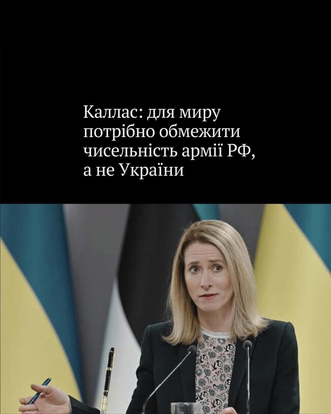 💬 "Якщо ми хочемо запобігти продовженню цієї війни, то насправді ми повинні обмежити армію Росії, а також її військовий бюджет", — сказала Каллас на питання, чи повинна Росія або Україна обмежити чисельність своїх армій.
