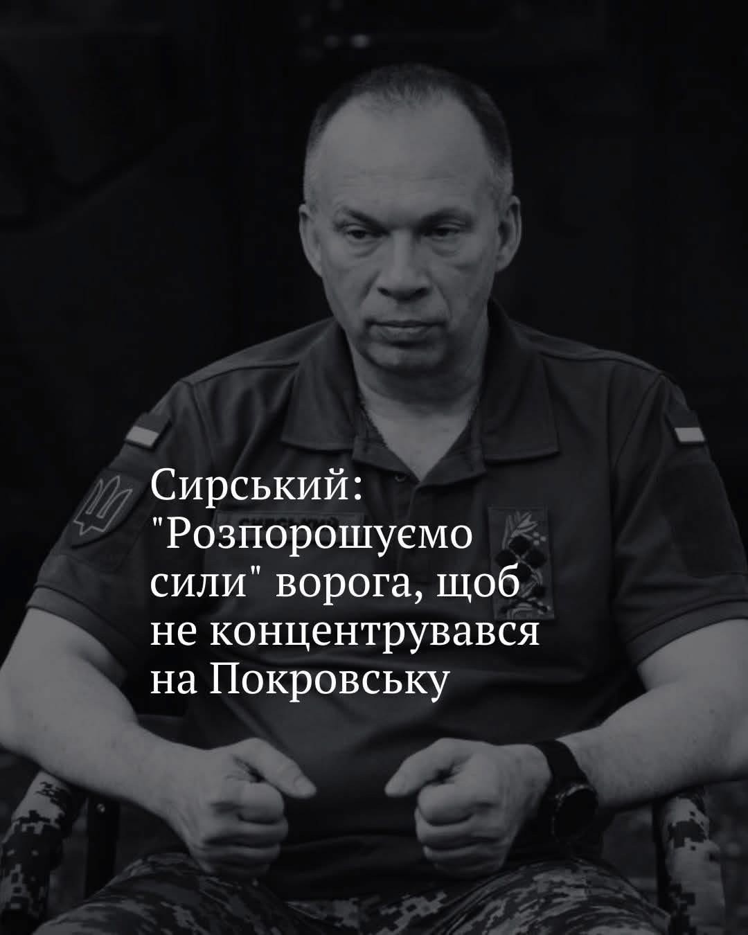 💬 "Збільшуємо тиск на Добропільському виступі. Продовжуємо звільнення та зачистку територій, що змушує ворога розпорошувати сили й унеможливлює концентрацію основних зусиль у районі Покровська", — написав Сирський.