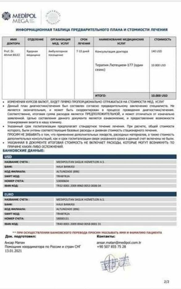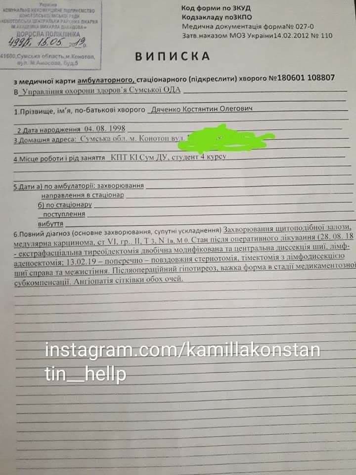 10 грудня Костя пройшов дороговартісне обстеження у лікарні «Медіполь» в Туреччині. На жаль, воно показало, що у хлопця в тілі залишаються вогнища недуги. Окрім того, у юнака в 2,5 рази підвищився кальцитонін. Йому призначили терапію «Лютецієм-177» Туреччині, вартість якої 10 000 доларів. А їх необхідно буде як мінімум три.