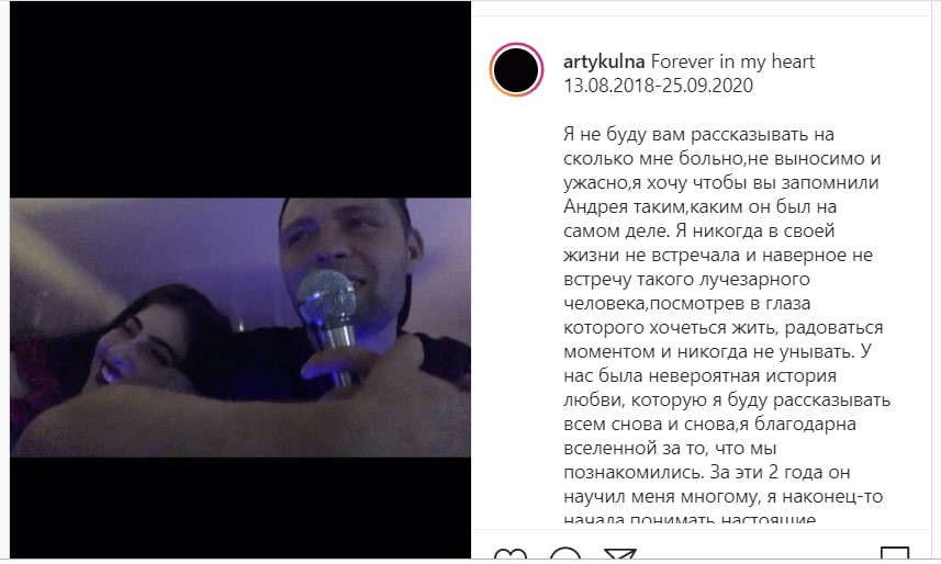 У нас была невероятная история любви, которую я буду рассказывать всем снова и снова, я благодарна вселенной за то, что мы познакомились. За эти 2 года он научил меня многому, я наконец-то начала понимать настоящие ценности жизни. Он любил меня до такой степени, что готов был отдать свое сердце мне, я никогда не чувствовала такой сильной любви. Мне очень жаль,что я так и не успела показать на сколько сильно люблю его, ибо я боялась открываться. Сейчас же, если бы мне дали выбор, я бы вырвала свое сердце и отдала ему, лишь бы услышать заветные слова : «киця, я прилетів, все харашо» . Я сочувствую всем, кто не был с ним знаком лично, вы потеряли многое.