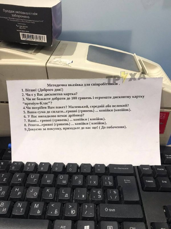 “Шёл второй день обслуживания на украинском. В магазинах Харькова продавцам выдали подсказки” – коментують світлину у місцевому пабліку Жить в Харькове.