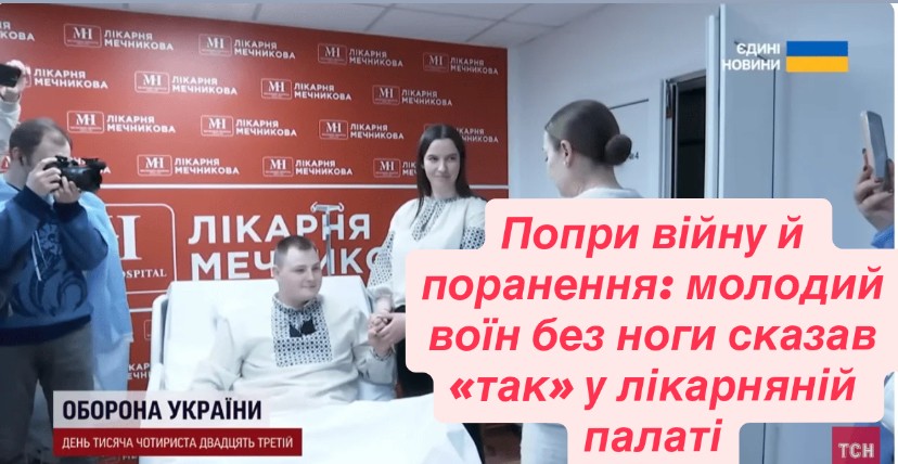 Вони планували весілля на серпень, але війна внесла свої корективи. Вадим дістав важке поранення на одному з найгарячіших напрямків фронту, втратив ногу і ледь не загинув. Проте щойно боєць розплющив очі в реанімаційній палаті, зрозумів: чекати літа не буде. Під звуки медичних моніторів та оплески лікарів закохані стали чоловіком та дружиною.