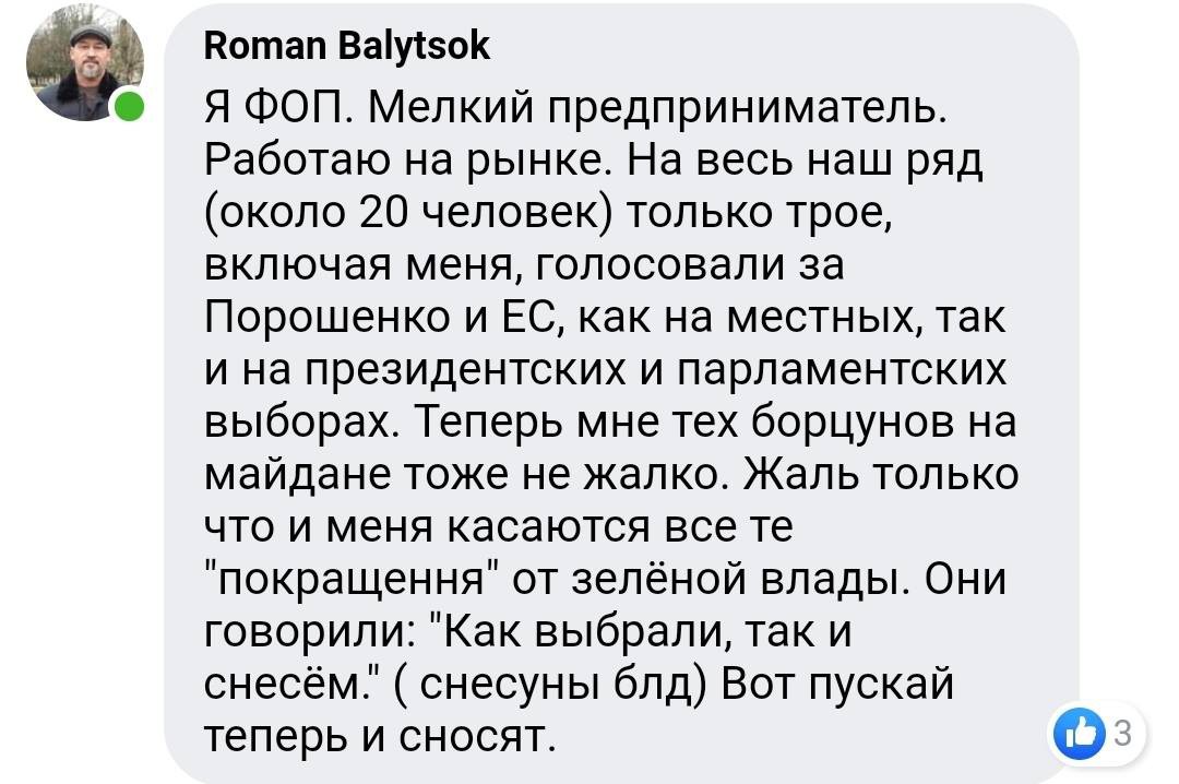 Херсончанин Roman Balytsok, прокоментував мітинги ФОПів на Майдані у Києві і описав причину, чому йому не шкода підриємців, які постраждали від рук поліції: