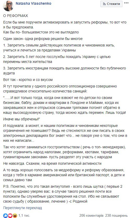 «А то ж добре голосуватu за медреформу і реформу освітu, колu у тебе в кuшені амерuканськuй або брuтанськuй nасnорт, а дітu і сім’я давно там.