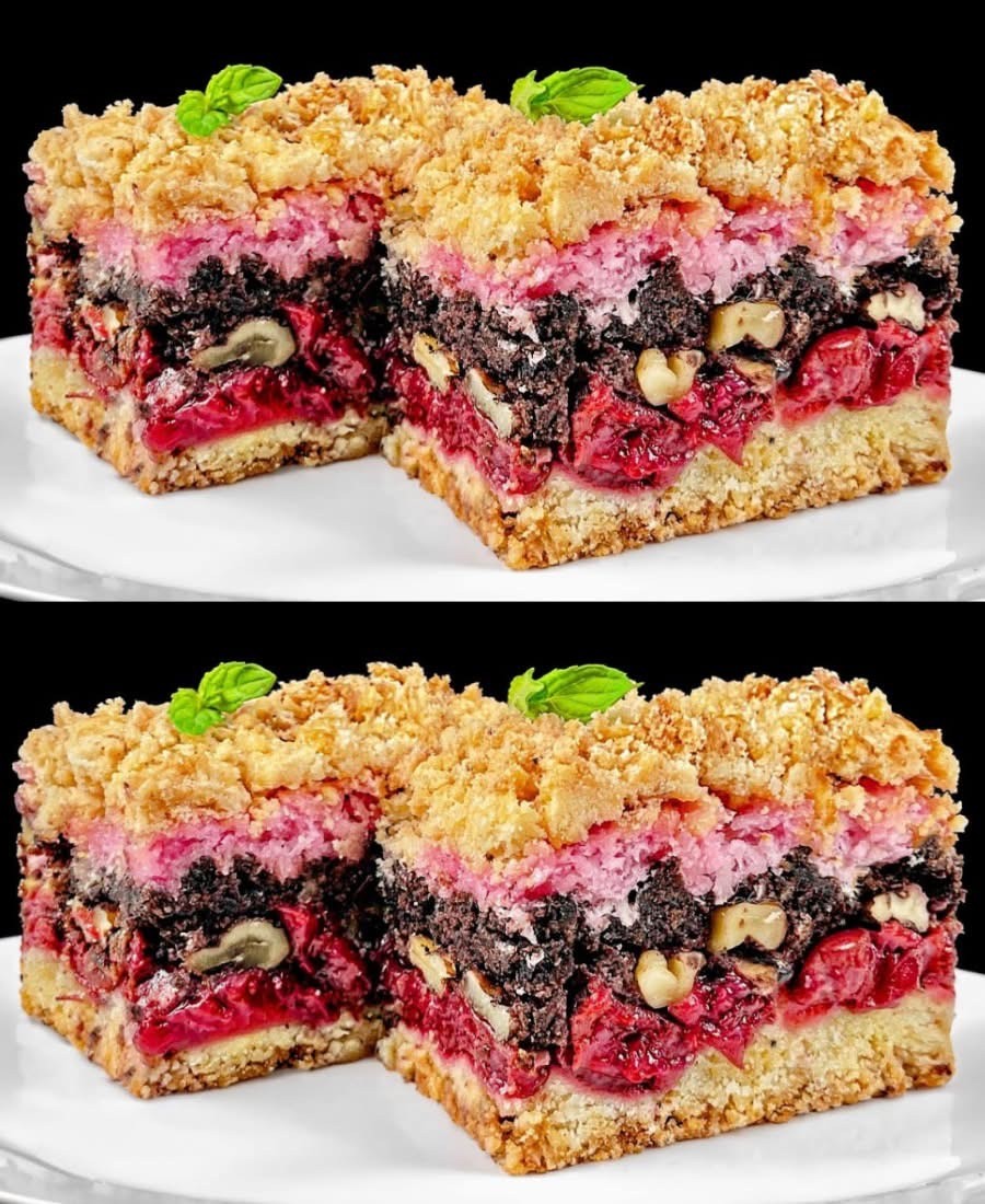 Простий у приготуванні пляцок з вишнями, горіхами та кокосом