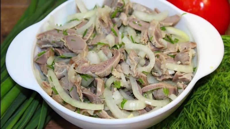 Порада: щоб, вийшло духмяніше і смачніше, шлуночки залиште маринуватися на всю ніч. Можете за своїм смаком додати до шлуночків інші продукти.