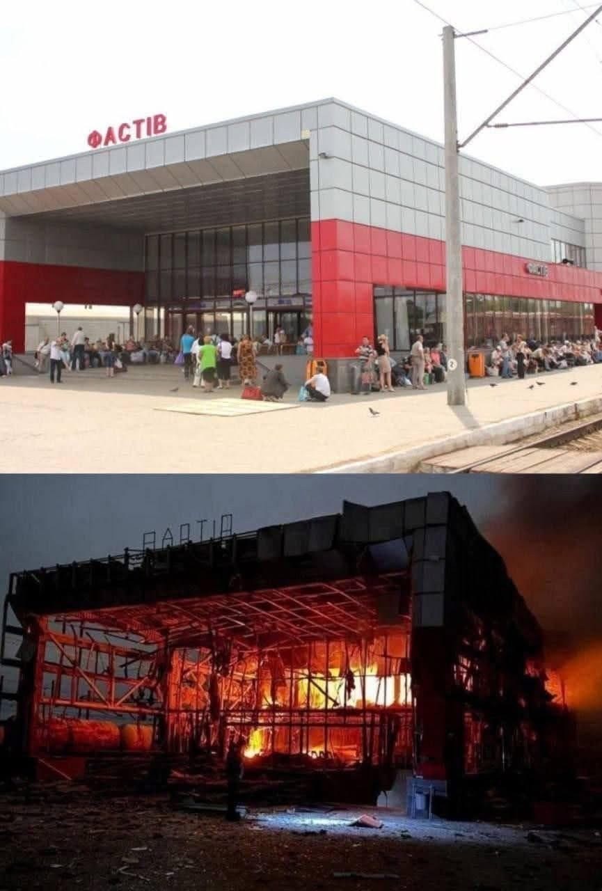 На фото – вокзал у Фастові до і після цинічного удару рф вночі.
