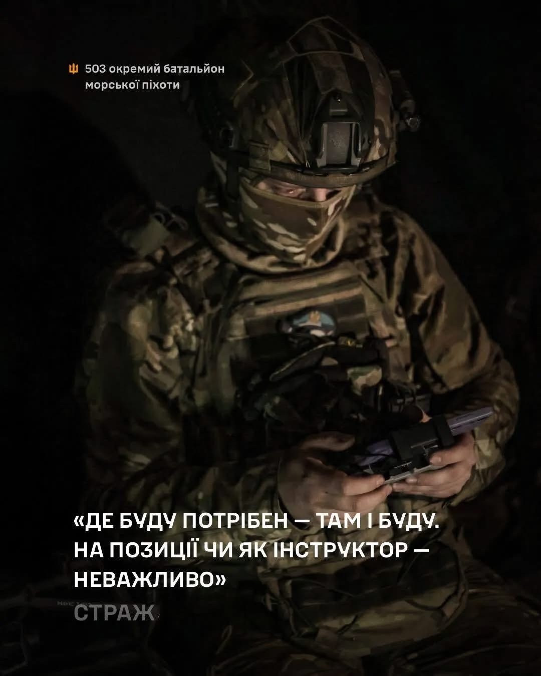 Молодший сержант із позивним "Страж" долучився до лав 503 Окремого батальйону морської піхоти навесні 2023 року. До повномасштабної війни він працював машиністом метро та займався рекламою в інтернеті, а за час служби у війську встиг ліквідувати понад 250 окупантів.
