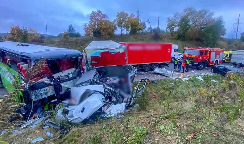 Вранці 11 жовтня ДТП трапилась з участю чотирьох транспортних засобів: вантажівки, мікроавтобуса Mercedes Sprinter, автомобіля Skoda та автобуса Plaxton Elite.