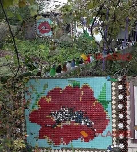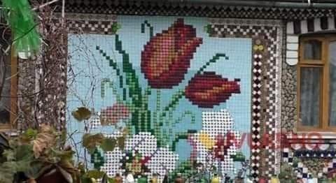 “Люди вилазять на паркан, щоб сфотографувати” – на Вінничині чоловік “вишив” будинок пластиковими кришечками. Фантастика! Мешканець Літина з камінців, кришечок та плитки “вишиває” своє подвір’я.