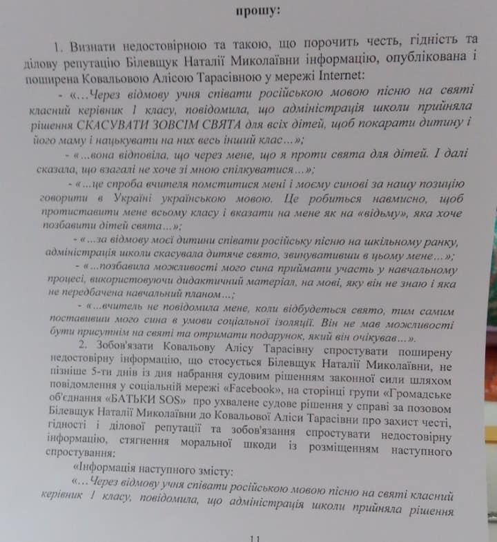 Ви не повірите, але торішня історія міста Глухова “як дитину цькували в школі за відмову співати пісню російською” перейшла в судову площину! Ні, не мама подала до суду. “Нещасна російськощелепна вчителька” вимагає від мами української дитини, котра хотіла вчитись українською, “компенсації”.