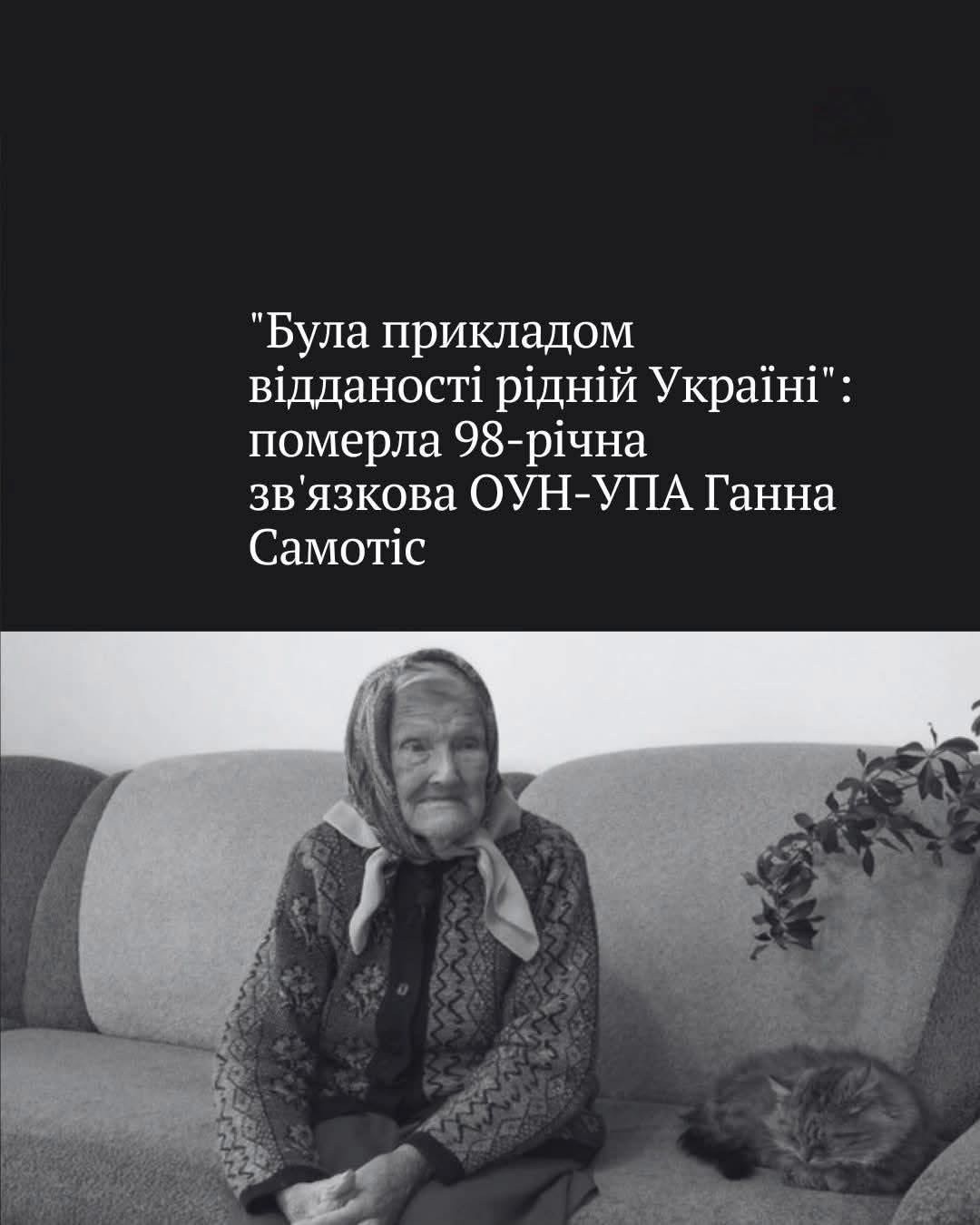 На 99-му році життя померла колишня зв'язкова ОУН-УПА Ганна Самотіс з Тернопільщини.