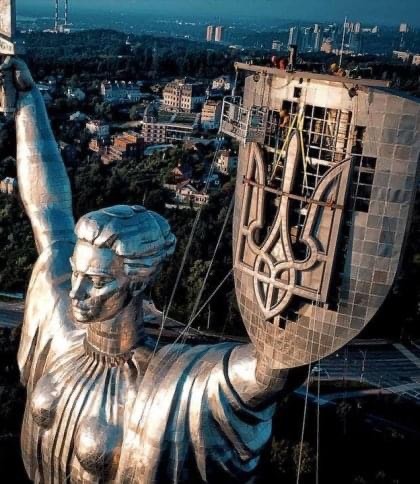 На щиті монумента «Батьківщина Мати» вже з’явилася корозія після встановлення Тризуба рік тому.