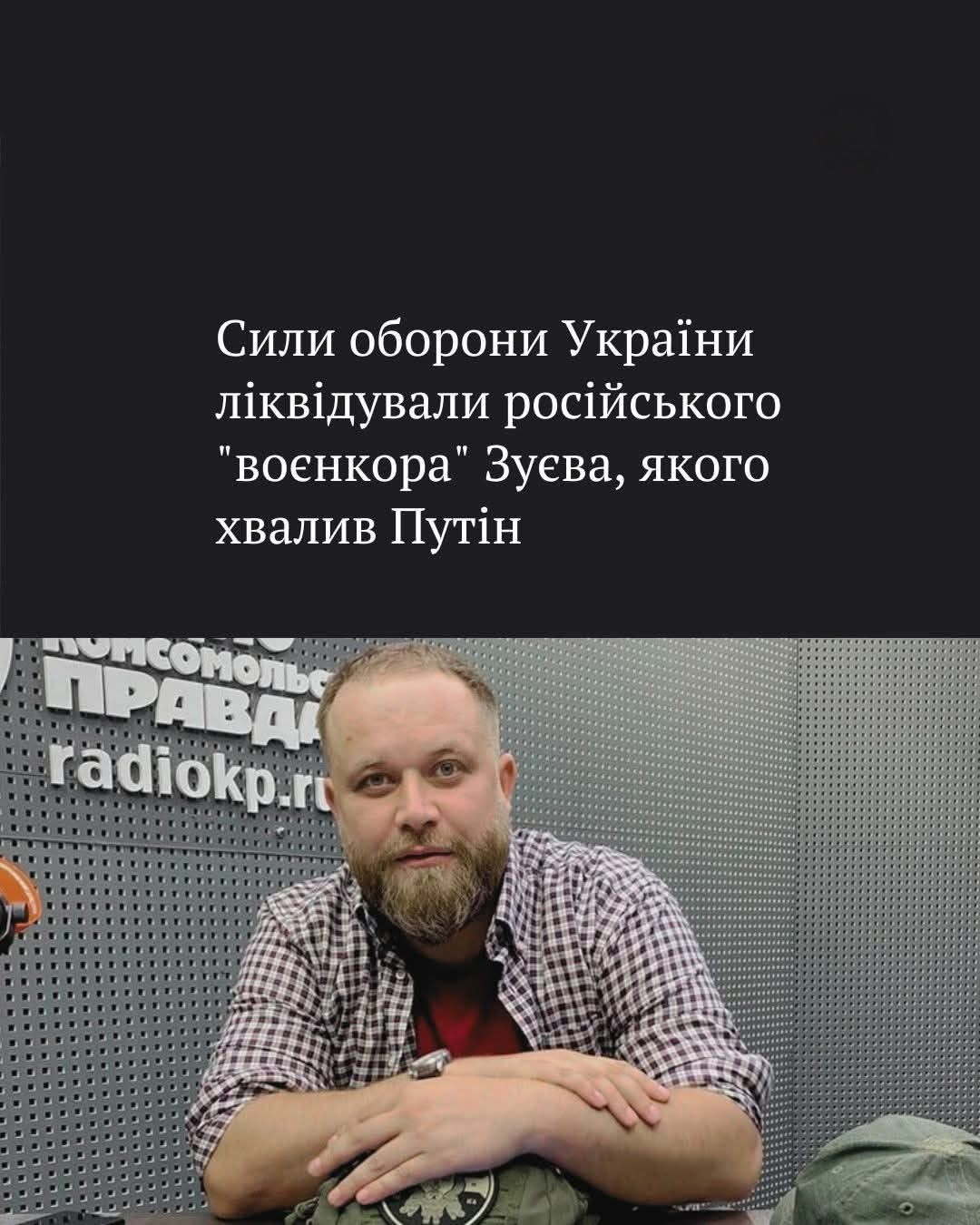 На тимчасово окупованій частині Запорізької області ударом дрона було вбито "воєнкора" російського державного інформагентства "РИА Новости" Івана Зуєва — його колега пропагандист, Юрій Войткевич, отри