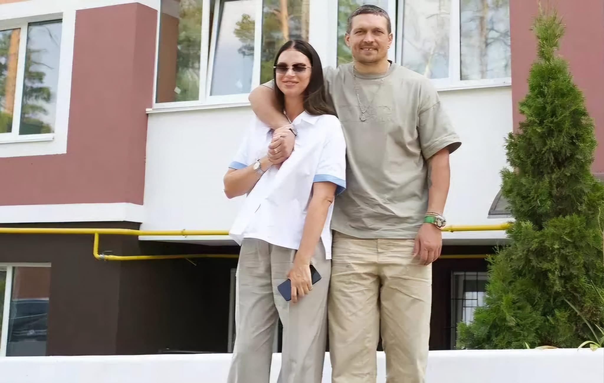 Наша гордість Олександр Усик з дружиною поряд з будинком, на відновлення якого Олександр передав 8 МІЛЬЙОНІВ Гривень.