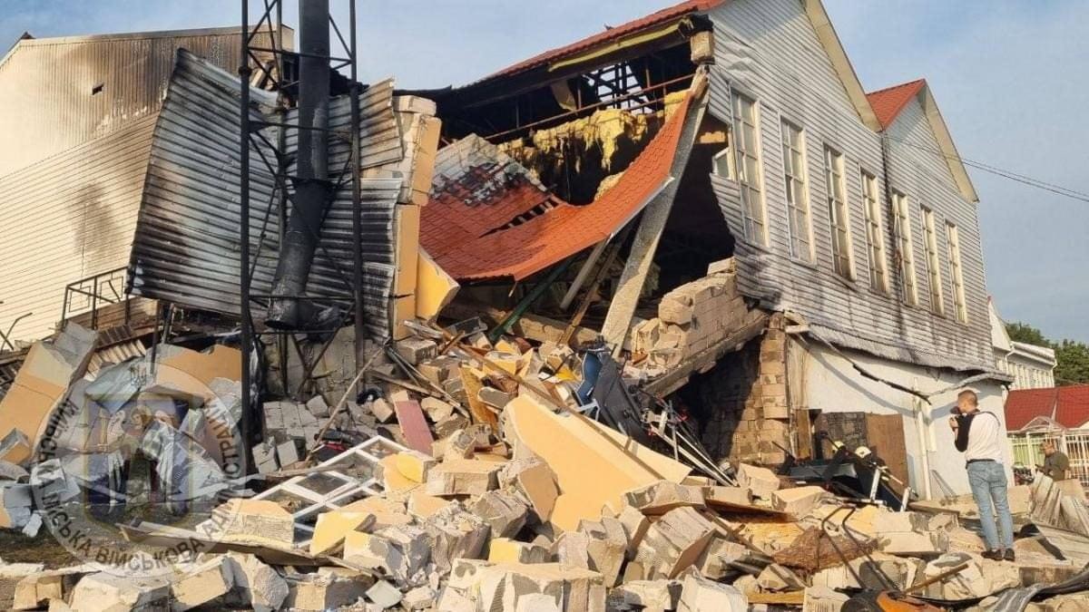 Як повідомляє ДСНС, у Святошинському районі внаслідок падіння уламків ракети сталось загоряння 4 автомобілів, а також спалахнула двоповерхова будівля складського приміщення. Пожежники ліквідували займання на площі 700 кв. м.