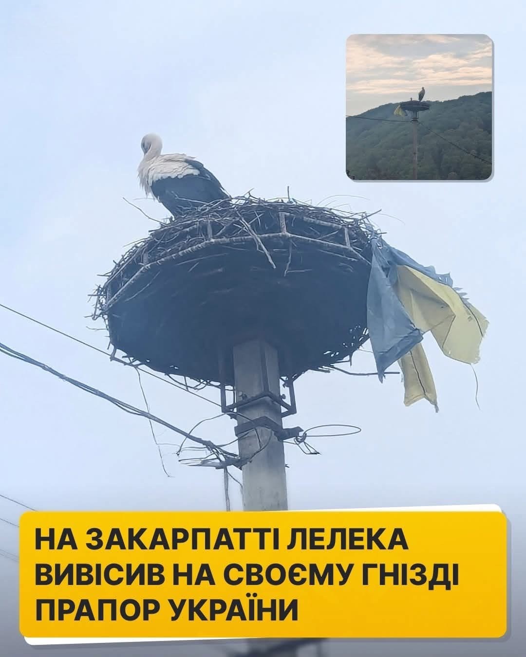 У місті Перечин лелека приніс синьо-жовтий прапор до свого гнізда. Таким чином він без слів сказав, що тут його дім, його земля 🥰