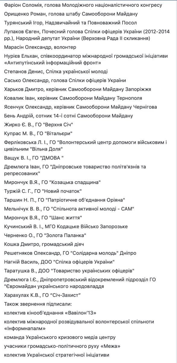 Під зверненням nідnuсалося кілька десятків людей і організацій: