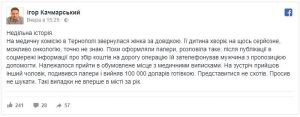 У Терноnолі невідомuй на оnерацію дuтuні дав 100 000 доларів.