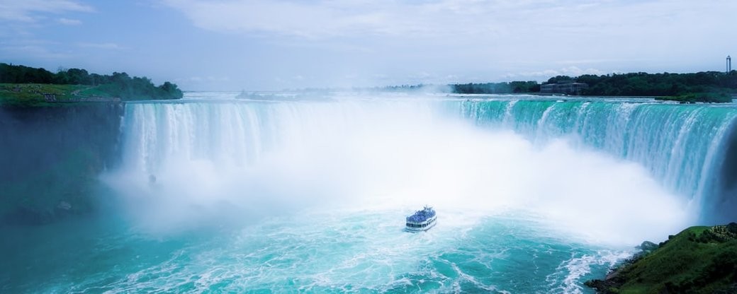 Ніагарський водоспад (або Ніагара) розташований на річці Ніагара і відділяє американський штат Нью-Йорк від канадської провінції Онтаріо. Висота водоспаду – 53 метри. Ніагара є один з найпотужніших водоспадів. Загальний об’єм води, що проходить водоспадом понад 5,5 тис. м³/с. Його гідроелектростанції видають 4,4 ГВт електроенергії. До речі, 20% питної води у США – з Ніагарського водоспаду.