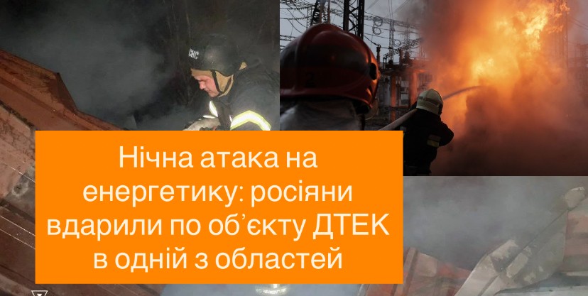 Нічна атака на енергетику: росіяни вдарили по об’єкту ДТЕК в одній з областей